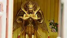 Dapeng Jinchi Mingwang (Chinese: 大鵬金翅明王; lit. 'The Golden-Winged King of Illumination'), also known as the Golden-Winged Great Peng (Chinese: 金翅大鵬雕), is a guardian deity in Mahayana Buddhism.[1] He is the spiritual uncle of the Buddha, who gave him a high position in heaven to guard the Pure land.[2] His origins are said to derive from an Indian bird god Garuda. Peng is one of the eight demi-gods of Buddhism (Tianlong Babu). He helps to guard Mount Sumeru and Trāyastriṃśa from attack by the Asuras.[1]