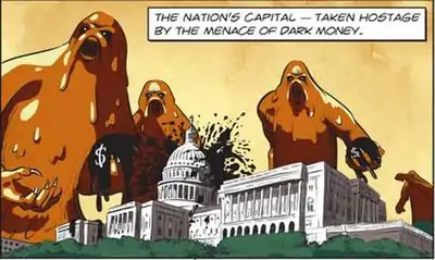 In politics, particularly the politics of the United States, dark money refers to spending to influence elections, public policy, and political discourse, where the source of the money is not disclosed to the public.