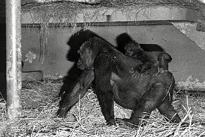 Nina with baby Wanto in the Zoo's old Ape House. Photo by Seattle Parks Department.
