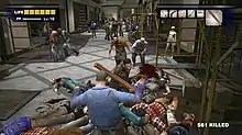 Dead Rising started development as a sequel to Shadow of Rome. The development team knew they wanted to make a game aimed at the Western market and also something different this time around so they changed the story, setting and time period from Shadow of Rome.[7] Despite the game's similarities to George A. Romero's Dawn of the Dead, Capcom asserted that the concept of "humans battling zombies in a shopping mall" is a "wholly unprotectible idea" under the present copyright laws. While the company wanted to have the game follow on from Resident Evil, Capcom's other zombie-centered game series, its development team opted to design the game with a more comical view of zombies in the horror genre, particularly in the way that players interacted with the zombies in the game, allowing them to be able to do anything against them in terms of what weapons they could use against them,[8] while they based the mall upon the stereotypical design of American shopping malls. One particular area that was keenly worked on by the team was the number of zombies that could appear onscreen during the game in order to give the feel that it was a major outbreak; when Electronic Gaming Monthly reviewed the game, they reported that up to 800 zombies could appear on screen at once.[9] As the development team consisted of members who had worked on Capcom's role-playing video game Breath of Fire: Dragon Quarter, it helped greatly in incorporating one of the game's elements borrowed from it, towards the developing the mechanics structure of Dead Rising - the ability to roll over anything earned in terms of experience, levels and abilities, towards making a new playthrough, was implemented so that players would have a sense of responsibility for their decisions and actions.[10]