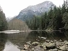 The episode was directed by Peter DeLuise, whilst Andrew Wilson served as cinematographer.[4] Filming took place in late July 2003, the episodes "Chimera" and "Grace" were also shooting at the same time.[4] As Amanda Tapping was being heavily featured in both "Grace" and "Chimera", the episode's story and filming was structured so that Tapping would be able to complete all her scenes in just two days of photography.[1][4][8] The exterior scenes were filmed around Mount Seymour Provincial Park and Lower Seymour Conservation Reserve in North Vancouver.[1][2] For the prototype weapon that would kill the Super Soldier, art director James Robbins designed a piece that attached to an existing weapon from the show, the Transphase Eradication Rod gun. The new piece would light up when snapped onto the T.E.R..[9]