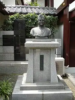 Bose's body was cremated in the main Taihoku crematorium two days later, 20 August 1945.[26] On 23 August 1945, the Japanese news agency Domei announced the death of Bose and Shidea.[20] On 7 September a Japanese officer, Lieutenant Tatsuo Hayashida, carried Bose's ashes to Tokyo, and the following morning they were handed to the president of the Tokyo Indian Independence League, Rama Murti.[27] On 14 September a memorial service was held for Bose in Tokyo and a few days later the ashes were turned over to the priest of the Renkōji Temple of Nichiren Buddhism in Tokyo.[28][29] There they have remained ever since.[29]