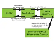 19. 1 2 Dillon, Nina M. (1991). "The Feasibility of Debt-For-Nature Swaps". North Carolina Journal of International Law and Commercial Regulation. 16: 127. Retrieved 28 August 2022.