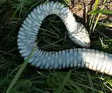 Automimicry refers to instances in which one body part of an animal mimics another. This may help and animal survive an attack, or help predators to appear innocuous. Examples include many moth, butterfly, and fish species that have "eye-spots". These are large dark markings that help prey escape by causing predators to attack a false target. For example, the gray hairstreak (Strymon melinus) shows the false head at its rear; it has a better chance of surviving an attack to that part than an attack to the head. Another example is the "two-headed" snake of Central Africa which has a tail that resembles a head. The snake even moves its tail in the way most snakes move their heads.[18] This adaptation functions to deceive prey as to the source of an attack.