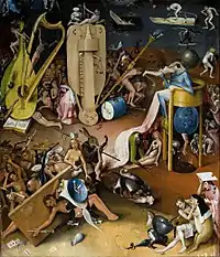 - ↑ Gombrich, E. H. "Bosch's 'Garden of Earthly Delights': A Progress Report". Journal of the Warburg and Courtauld Institutes, Volume 32, 1969: 162–170