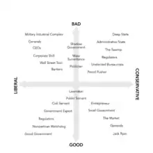 Linguist Geoffrey Nunberg said that deep state is an "elastic label" in that "its story conforms to the intricate grammar of those conspiracy narratives", referencing the transition of conservative rhetoric regarding "big government" from "meddlesome bunglers" to "conniving ideologues".[49]