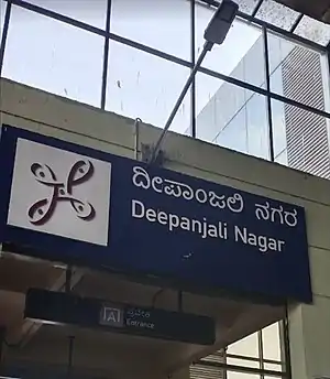 Deepanjali Nagar is an elevated metro station on the East-West corridor of the Purple Line of Namma Metro serving Deepanjali Nagar in Bangalore, India. It was opened to the public on 16 November 2015.[1][2]