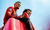 Lovren entered the 2018–19 season injured following that summer's World Cup.[47] He returned to the squad for an EFL Cup match against Chelsea that Liverpool lost 1–2.[48] On 26 December, he scored the opening goal in the 4–0 win over Newcastle United.[49] During the match against Manchester City on 3 January 2019, Lovren made a crucial error that lead to Sergio Agüero's opening goal. Liverpool lost the match 2–1 and ending their unbeaten run in the Premier League.[50][51] Six minutes into the FA Cup game against Wolverhampton Wanderers on 7 January, Lovren got injured and substituted for Ki-Jana Hoever.[52] He subsequently lost his spot in the starting eleven playing only two full games for the remainder of the season, as Liverpool lost the Premier League by a single point behind eventual champions Manchester City[53] and won the 2019 UEFA Champions League Final against Tottenham Hotspur where he remained an unused substitute.[54][55] He became the tenth Croatian in history to win the Champions League.[56]