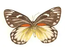 Delias descombesi, the redspot Jezebel is a medium-sized butterfly of the family Pieridae, that is, the yellows and whites.