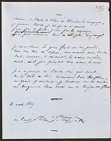 Demain dès l'aube (English: Tomorrow at dawn) is one of French writer Victor Hugo's most famous poems. It was published in his 1856 collection Les Contemplations. It consists of three quatrains of rhyming alexandrines. The poem describes a visit to his daughter Léopoldine Hugo's grave four years after her death.