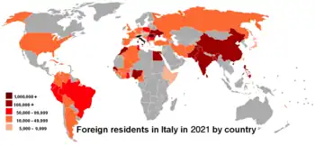 73. "I numeri degli stranieri residenti in Italia". Youtrend.it. 9 December 2020. Retrieved 15 May 2021.