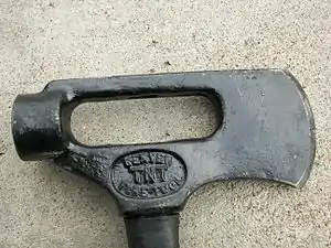 The TNT Tool (or Denver Tool as it was formerly known) is a multi-purpose tool used by firefighters, emergency personnel, and law enforcement officers to gain forcible entry[1] to buildings, automobiles, etc. during emergency situations. It is a combination axe, sledgehammer, pry tool, ram, and D-handle pull tool. It is also carried by off-roaders and those traveling in remote areas.
