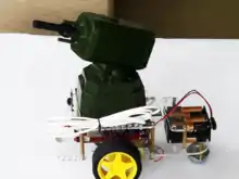 The GoPiGo Raspberry Pi Robot with a USB rocket launcher attached.