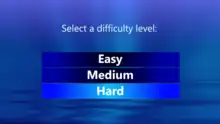 Some games offer the player a choice of difficulty level before play begins.