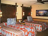 A standard guest room with two queen beds, after the resort's 2006 renovation.