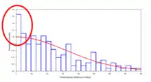 An indication of angle rounding to zero in the data - there are more detections than expected in the very first data interval
