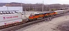 Distributed power on the BNSF Railway with autoracks on the front half and intermodal on the back half