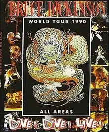Dive! Dive! Live! is the first live video recorded by heavy metal singer Bruce Dickinson. It was filmed at Wolf & Rissmiller's Country Club on Sherman Way, Reseda, California, on 14 August 1990, while finishing the Tattooed Millionaire US tour leg. The video was produced by Paul Flattery and directed by Jim Yukich—who also worked on Iron Maiden's Live After Death—and the backing band was the same as on "Tattooed Millionaire", save drummer Dickie Fliszar, who replaced Fabio del Rio to perform during the tour. The set-list consisted practically of all the songs from the Tattooed Millionaire sessions, except for "Darkness Be My Friend" from "All The Young Dudes" single. It included "Bring Your Daughter... to the Slaughter" and some cover versions played throughout the tour, like Deep Purple's "Black Night", AC/DC's "Sin City". "Riding with the Angels" is a song composed while Dickinson still played with Samson.[1]