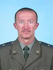 Dmitry Gennadyevich Medvedev (Russian: Дми́трий Генна́дьевич Медве́дев; 1970 – 15 April 2005) was a Lieutenant-Colonel in the Federal Security Service of the Russian Federation who was killed in action in Chechnya. For his service he was posthumously honoured as a Hero of the Russian Federation.