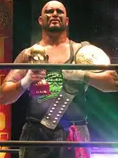Hankinson appeared on the World Wrestling Fan Xperience (WWFX) Champions Showcase Tour in Manila, Philippines on February 4, 2012, where he wrestled under the name Luke Gallow (using his heel S.E.S. gimmick) in a losing effort to Rhyno.[10] He also appeared at Wrestlerama in Georgetown, Guyana.[32] On October 6, 2012, he was defeated by Scott Steiner in the House of Hardcore's first show.[33] On September 22, 2012, Luke Gallows would debut for Dynamite Championship Wrestling at their Annual Breast Cancer Benefit Event. He won the American Pro Wrestling Alliance World Tag Team Championship in 2012 with Knux, but they were later stripped of the title, as they were made inactive, on March 1, 2013. From June 3 to 13, 2012, Hankinson, as Luke Gallows, worked a tour with the Japanese Pro Wrestling Noah promotion, during which he often teamed with Bobby Fish and Roderick Strong.[34][35][36] He appeared for Pro Wrestling Syndicate on May 18, 2013, along with Knux and D'Lo Brown.[37] Hankinson made his last independent appearance on January 16, 2016, billed as Luke Gallows when he unsuccessfully challenged Chris Nelms in a Fatal 4-Way match for WrestleMerica Brass Knuckles Championship.[38]