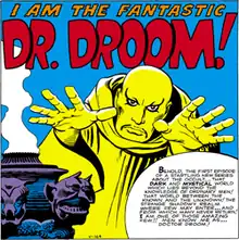 Doctor Anthony Druid, also known as Doctor Droom and Druid, is a fictional mystic and a supernatural monster-hunter appearing in American comic books published by Marvel Comics. Co-created by writer-editor Stan Lee and penciller Jack Kirby, he debuted as Dr. Anthony Droom in Amazing Adventures #1, published in March 1961 (with a cover date of June 1961).[1] Kirby's art was inked by artist Steve Ditko. Dr. Droom appeared in four more issues of Amazing Adventures before his stories discontinued. Over a year later, artist Steve Ditko approached Stan Lee with a new magic character called Mr. Strange.[2] Liking the idea, Stan Lee renamed the character Dr. Strange and wrote an origin story similar to Dr. Droom's. Dr. Anthony Droom was finally reintroduced to comics in 1976 in Weird Wonder Tales #19 in a retelling of his origin story which renamed him Dr. Anthony Druid. This retelling included new writing by Larry Lieber (brother of Stan Lee).[3]