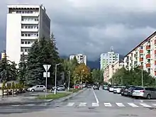 Dolný Kubín lies at an altitude of 468 metres (1,535 ft) above sea level and covers an area of 55.055 square kilometres (21.3 sq mi).[5] It is located in northern Slovakia on the Orava River, between the Lesser Fatra, Oravská Magura and Chočské vrchy mountains. It is located around 15 km (9.32 mi) from Ružomberok, 45 km (27.96 mi) from the Polish border and 270 km (167.77 mi) from Bratislava. The town is composed of the following boroughs: Banisko, Beňova Lehota, Brezovec, Kňažia, Malý Bysterec, Medzihradné, Mokraď, Srňacie, Staré mesto, Veľký Bysterec and Záskalie. The city limits also encompass the settlement of Jelšava.