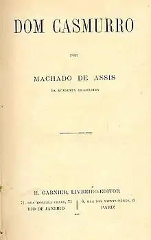 Dom Casmurro is an 1899 novel written by Brazilian author Joaquim Maria Machado de Assis. Like The Posthumous Memoirs of Bras Cubas and Quincas Borba, both by Machado de Assis, it is widely regarded as a masterpiece of realist literature. It is written as a fictional memoir by a distrusting, jealous husband. The narrator, however, is not a reliable conveyor of the story as it is a dark comedy. Dom Casmurro is considered by critic Afranio Coutinho "a true Brazilian masterpiece, and maybe Brazil's greatest representative piece of writing" and "one of the best books ever written in the Portuguese language, if not the best one to date." The author is considered a master of Brazilian literature with a unique style of realism.[1]