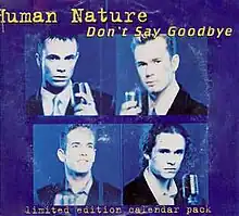 "Don't Say Goodbye" is a song by Human Nature, released as the fourth single from their album Telling Everybody on 9 March 1997 by Sony Music Records and Columbia Records. It nominated the 1997 ARIA Music Award for Highest Selling Single along with Wishes but lost to Savage Garden's Truly Madly Deeply. The song peaked at No. 8 in Australia, becoming their second top ten single.[1]