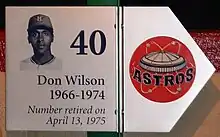 ![]() Don Wilson's number 40 was retired by the Houston Astros in 1975.