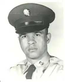 Long was a Black American of mixed race descent (Black, White, Native American) descent and was a son of Herman Long and Mildred Keels. Many of his ancestors, along with the majority of Blackfork community members descendant from free people of color from Virginia and North Carolina, and many of them were Native Americans from tribes such as the Saponi. Sgt. Long graduated from Decatur-Washington High School in Blackfork, Ohio. Long joined the Army in Ashland, Kentucky in 1963,[1] and by June 30, 1966, was serving as a Sergeant in Troop C, 1st Squadron, 4th Cavalry Regiment, 1st Infantry Division. On that day, Long's unit came under heavy enemy attack during a reconnaissance patrol. During the battle, a hand grenade was thrown near Long and the crew of a disabled armored personnel carrier. He threw himself on the grenade, successfully protecting his fellow soldiers while sacrificing his own life. On May 29, 2016, a commemoration in Oak Hill, Ohio took place. During the ceremony HB 366 named the portion of State Route 93 from the southern boundary of the Village of Oak Hill to the Jackson County line as the “Sgt. Donald Russell Long, Medal of Honor Recipient, Memorial Highway.” [2][3][4]