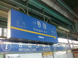 - ↑ "동암역" (in Korean). Doopedia. Retrieved 2016-01-14.