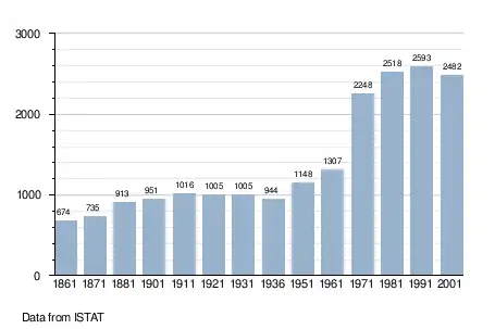 - ↑ "Popolazione Residente al 1° Gennaio 2018". Italian National Institute of Statistics. Retrieved 16 March 2019.