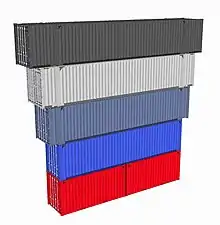 53 ft, 48 ft, 45 ft, 40 ft and 20 ft containers stacked