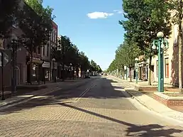 By the latter part of the century, development in the downtown district reached its peak. A new courthouse was constructed in 1884 (just outside the district), and Adrian was the commercial supply center for the surrounding agricultural area. By 1900, the growth of the central business district had slowed, leaving a district that has changed little in the years since. Although many of the storefronts have been altered, some buildings demolished, and a few new buildings added, downtown Adrian is a remarkably intact representation of what the area looked like over a century ago.[3]