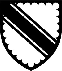 Arms of Dowrish: Argent a bend cotised sable a bordure engrailed of the last[11]