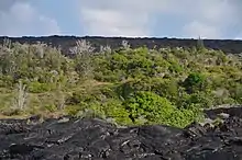 Extensive lava flow from volcanoes fragments the geographical distribution of this species around the island.[14] The flow of lava creates kipukas, isolated habitable patches of vegetated land,[14] which can range from several square meters to several square kilometers in size.[15] D. silvestris inhabits high-altitude, cool rainforests on the slopes of all five volcanoes in Hawaii (Mauna Kea, Mauna Loa, Kilauea, Hualalai and Kohala), specifically in altitudes ranging from 900–1,500 m (3,000–4,900 ft).[16] The most ancestral populations of this fly species are found on Hualalai, the third youngest volcano on the island.[17]
