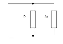 Series admittances 1/Y = 1/Z1 + 1/Z2 |