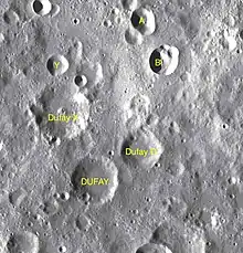- ↑ Dufay Albedo Anomaly low-Sun controlled NAC mosaic, Lunar Reconnaissance Orbiter Camera