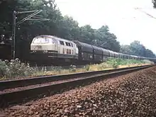 DB 216 011-7 on the Gelsenkirchen Schalke–Oberhausen-Osterfeld Süd line near Essen-Karnap, August 1989