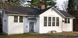 The school interior includes two classrooms separated by moveable partitions that could be opened to create a larger space for school presentations and community events. An industrial room projects from the center of the building. The industrial room was used for home economics instruction.[3] Heat for the building was provided by a single wood-burning stove. Most of the original elements of the building were extant as of 2006, including cabinets, doors, moldings, hardware, chalkboards, the wood-burning stove, and a wooden stage at the southwestern end of the building. The kitchen sink, refrigerator, and cooking stove in the industrial room were installed in 1955 after the Brown v. Board of Education decision led Sumner County officials to allocate some funds to improve facilities in the county's segregated African-American schools.[3]