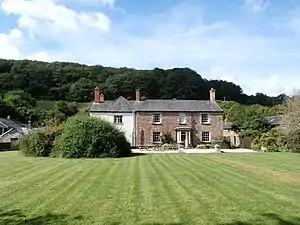 In the summer of 1796 Rev John Swete (1752-1821) visited Duvale as part of his topographical tour of Devon. Although he described the house itself as "of antient date without any conspicuous marks of consequence",[27] he was highly impressed by the natural scenery of the location. He approached from Tiverton, via Cove, where he crossed the River Exe by the newly built Cove Bridge, and proceeded across Duvale Ford to Bampton. He described seeing "Duvale House", and described the surrounding scenery as:[28]