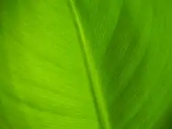 Dwarf Cavendish leaves are broad with short petioles. Its shortness makes it stable, wind-resistant, and easier to manage. This, in addition to its fast growth rate, makes it ideal for plantation cultivation.[9] An easily recognizable characteristic of this cultivar is that the male bracts and flowers are not shed.