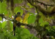 Eaglenest Wildlife Sanctuary is well known as a major birding area.[3] It is home to at least 454 species of birds including 3 cormorants, 5 herons, black stork, Oriental white (black-headed) ibis, 4 ducks, 20 hawks, eagles, kites, harriers and vultures, 3 falcons, 10 pheasants, junglefowl, quail, and peafowl, black-necked crane, 3 rails, 6 plovers, dotterels, and lapwings, 7 waders, ibisbill, Indian Thick-knee, small pratincole, 2 gulls, 14 pigeons, 3 parrots, 15 cuckoos, 10 owls, 2 nightjars, 4 swifts, 2 trogons, 7 kingfishers, 2 bee-eaters, 2 rollers, hoopoes, 4 hornbills, 6 barbets, 14 woodpeckers, 2 broadbills, 2 pittas, 2 larks, 6 martins, 7 wagtails, 9 shrikes, 9 bulbuls, 4 fairy-bluebirds, 3 shrike, brown dipper, 3 accentors, 46 thrushes, 65 Old World flycatchers, 6 parrotbills, 31 warblers, 25 flycatchers, 10 tits, 5 nuthatches, 3 treecreepers, 5 flowerpeckers, 8 sunbirds, Indian white-eye, 3 bunting, 14 finches, 2 munia, 3 sparrows, 5 starlings, 2 orioles, 7 drongos, ashy woodswallow and 9 jays.[7] The sanctuary has the distinction of having three tragopan species, perhaps unique in India.[8]