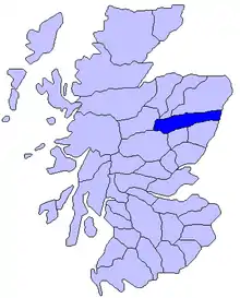 The Mormaerdom comprised the larger portion of modern Aberdeenshire, extending from north of the River Don southward to the Mounth hills.[2] Its principal seats were Migvie and Doune of Invernochty. The Mormaerdom may initially have alternated between two kin-groups, represented respectively by Morggán, and by Gille Críst. Gilchrist succeeded Morgund, but was himself succeeded by Donnchadh (Duncan), son of Morgund. On the other hand, we do not know Gilchrist's parentage, and chronologically he could have been an elder brother of Donnchadh.