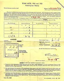 The Tithe Acts of 1936 and 1951 established the compulsory redemption of English tithes by the state where the annual amounts payable were less than £1, so abolishing the bureaucracy and costs of collecting small sums of money. This applied to East Dundry as elsewhere.