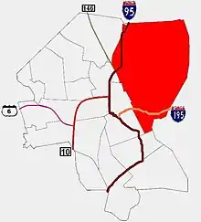 Mostly residential,[13] the East Side is the most affluent part[14] of the city with higher property values, lower unemployment, and higher income levels than the city as a whole.[15] Approximately 20% of the city's 190,934 people live on the East Side.[16] Mount Hope and the area along Elmgrove Avenue have historically had a large community of Russian Jews.[17]