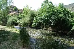 The Ebrón River is a river of Spain, a tributary of the Turia River. It sources near Tormón, in the province of Teruel (Aragon). It appears in the comarca of the Rincón de Ademuz, province of Valencia (Valencian Community). It crosses the municipalities of Castielfabib and Torrebaja, and it mouths in the Turia River, near the limits of the municipality of Ademuz. The Ebrón River, with the Bohílges River, is the main tributary of the Turia River in the comarca of the Rincón de Ademuz.