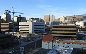 Major factors that have affected economic activity within the city in the early 21st century have been the 2002 Winter Olympics, poverty, and urban sprawl. The 2002 Winter Olympics drove a need for many hotels and restaurants that have now led to market saturation. Urban sprawl has created fierce suburban economic competition resulting in inner-city economic decay. However, studies have shown that increased suburban growth has caused increased construction in the downtown area.[5] By 2006, availability of Class A office space had fallen below 2% for the downtown area, which led to the construction of an eight-story, 230,000 sq. ft. unit for Fidelity Investments, located in The Gateway, and an additional 750,000 sq. ft. of custom office space for companies such as Myriad Genetics, Southern Nevada University and Spillman Technologies.[6] A decade later, a Class A office tower of over 440,000 sq. ft. at 111 Main Street was planned for completion in late 2016, with an accompanying 2,500-seat theater and mixed use retail and boutique hotel on Regent Street.[7]:1