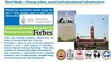 ![]() Chennai, the capital of Tamil Nadu with its skyline and Metro | |