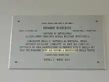 He was born on 13 October 1856 in Naples as the son of Ludovico Bianchini who was an eminent jurist, economist and interior minister of the Kingdom of the Two Sicilies and of Giulia Cerrina.[1] Eduardo was a student of the Nunziatella Military School from 1866 to 1874 and the Military Academy of Artillery and Engineers of Turin. He was appointed artillery officer and assigned first to the 13th Field Artillery Regiment and then to the Horse Artillery Regiment. After being promoted to captain, he served with the 6th and 7th Field Artillery Regiments.[1]